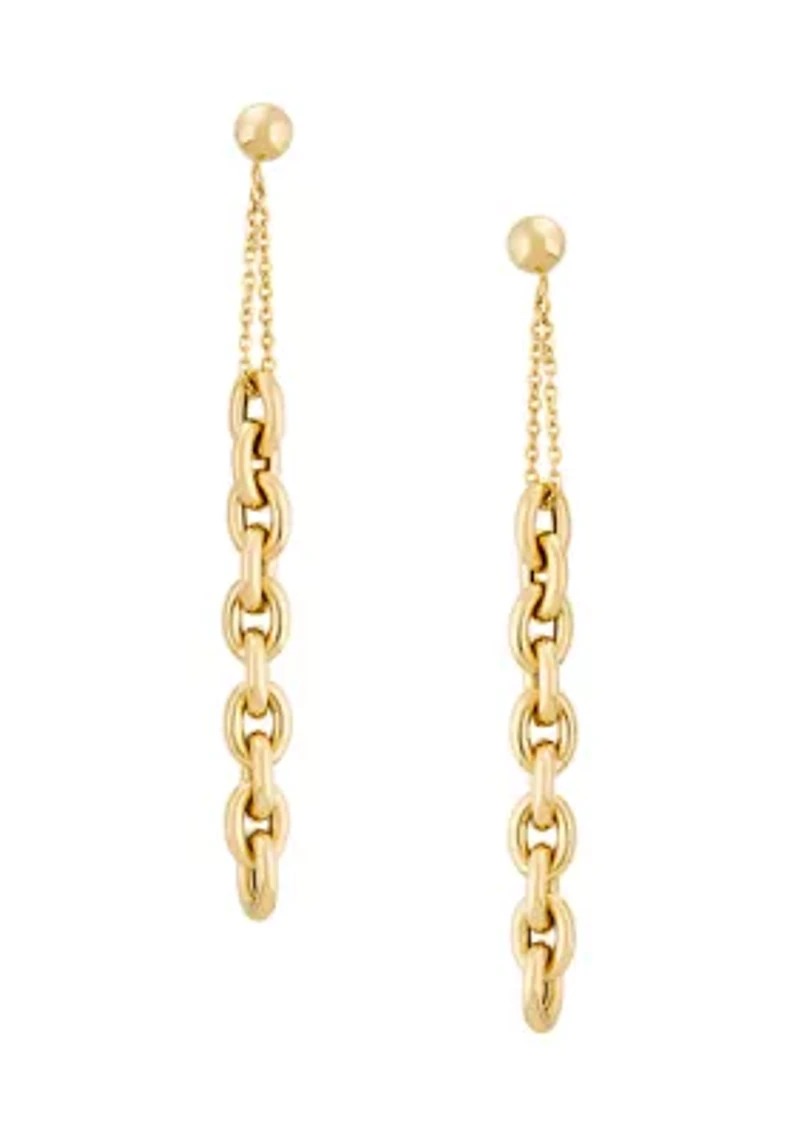 Delicately dangling from a ball post, these rolo chain earrings from Belk & Co. are luxuriously crafted in high-polished 10K yellow gold. Post back earring Polished finish Imported Belk Exclusive Product Specifications 0.24" W x 2.56" H Material & Care 10K Yellow Gold Clean with a soft cloth