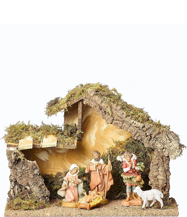 Roman Fontanini Nativity Holy Family 5-Piece Figurine Set with Traditional Stable