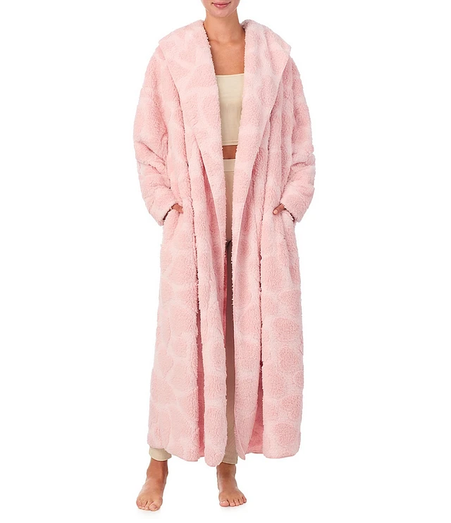 Room Service Cozy Plush Heart Print Open Front Maxi Duvet Coat