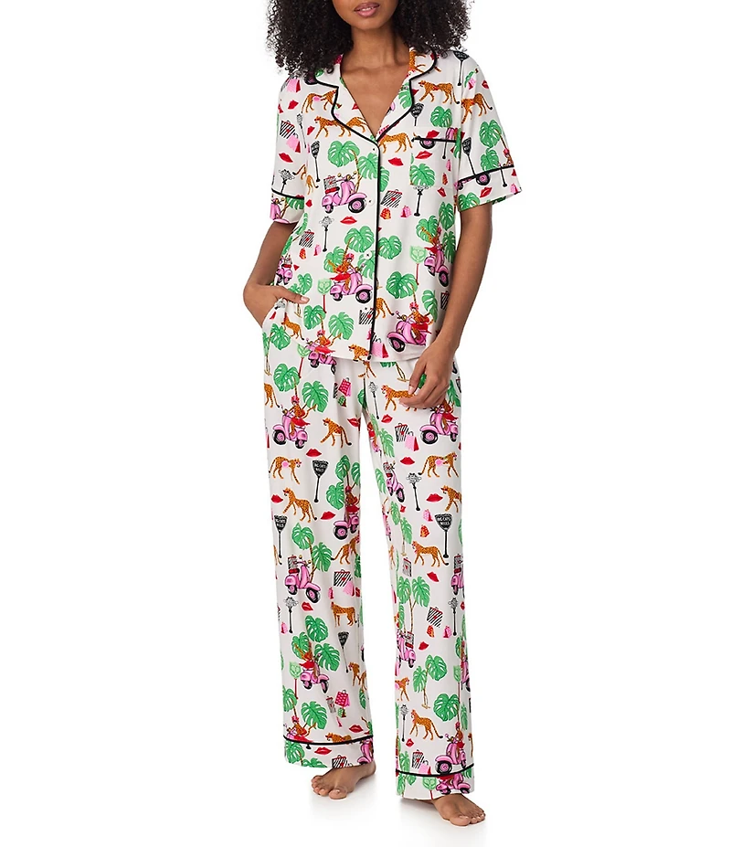 Room Service Wild Ride Print Short Sleeve Notch Collar Long Jersey Knit Pajama Set