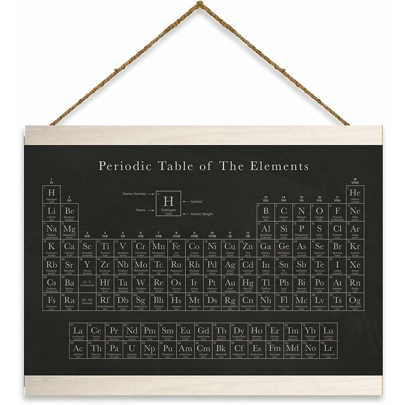 The Periodic Table wall hanging from RoomMates enables you to quickly and easily add a statement to your room's wall décor. To install, simply hang from the attached nylon cord with a small nail, hook, or thumbtack on the wall of your choice. Use in bedrooms, playrooms, nurseries, offices, bathrooms and other living spaces in your home to liven up your décor in an instant.Details:Black and white11.75" x 18.5" x 1"CanvasReady to hangRecommended for indoor use only