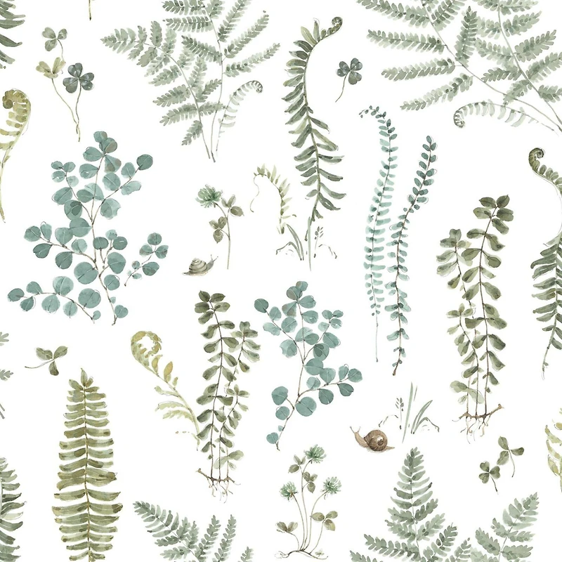 Beautify your walls and living spaces with this Fern Study Peel and Stick Wallpaper from RoomMates created by Lisa Audit. Warm and delicate shades of sage green and baby blue come together in this gorgeous botanical scene, bringing bright and breezy vibes to your home décor.Details: White, green, and blue 18" x 18.86ft. (28.29 sq. ft.) 18" repeat Backed by peel and stick technology 100% safe for walls Printed on high-quality vinyl