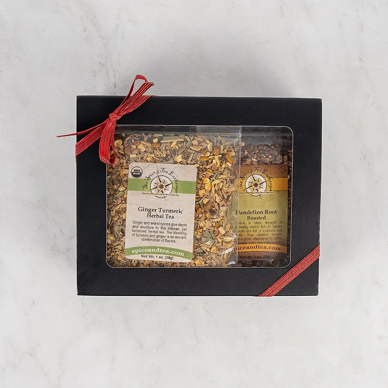 Contents: Dandelion Root – Roasted – 1 oz, Licorice Root – Cut & Sifted – 1 oz, Roots Revival Herbal Tea – 1 oz, Ginger Turmeric Herbal Tea – 1 oz.