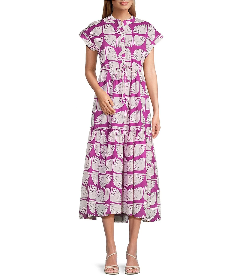 Ro's Garden Mumi Kyle Print Mandarin Collar Short Sleeve Button Front Midi Dress in Chattanooga, TN