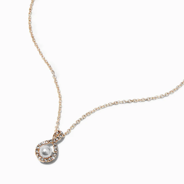 Rose Gold-tone Pearl Crystal Pendant Necklace