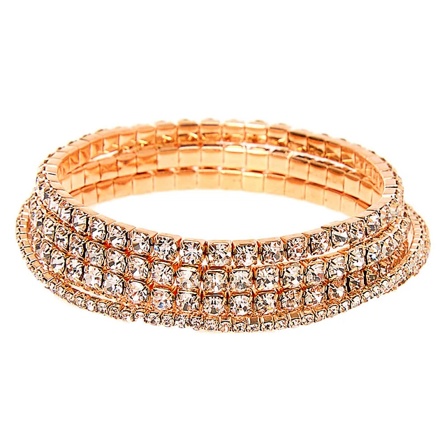 Rose Gold-tone Rhinestone Stretch Bracelets - 5 Pack