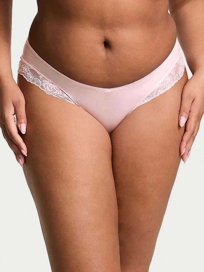 This instantly classic panty features our collectible logo lace accented with gold hardware and a flirty back cut out for an everyday, sexy look.
