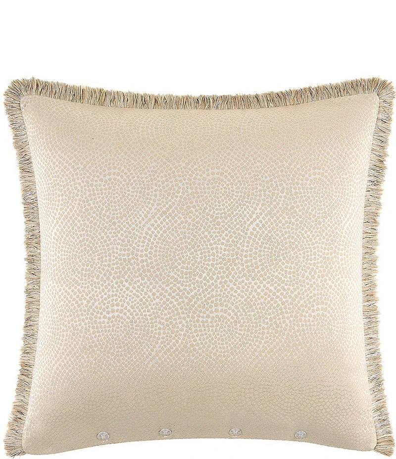 From the Hannah collection by Rose Tree, this sham features: Face and reverse made of 100% polyester Woven dot design Reverse to a basketweave detail Brush fringe trim on 3 sides (top and sides) Bottom button closure Approx. 26" L x 26" W Dry clean Imported.