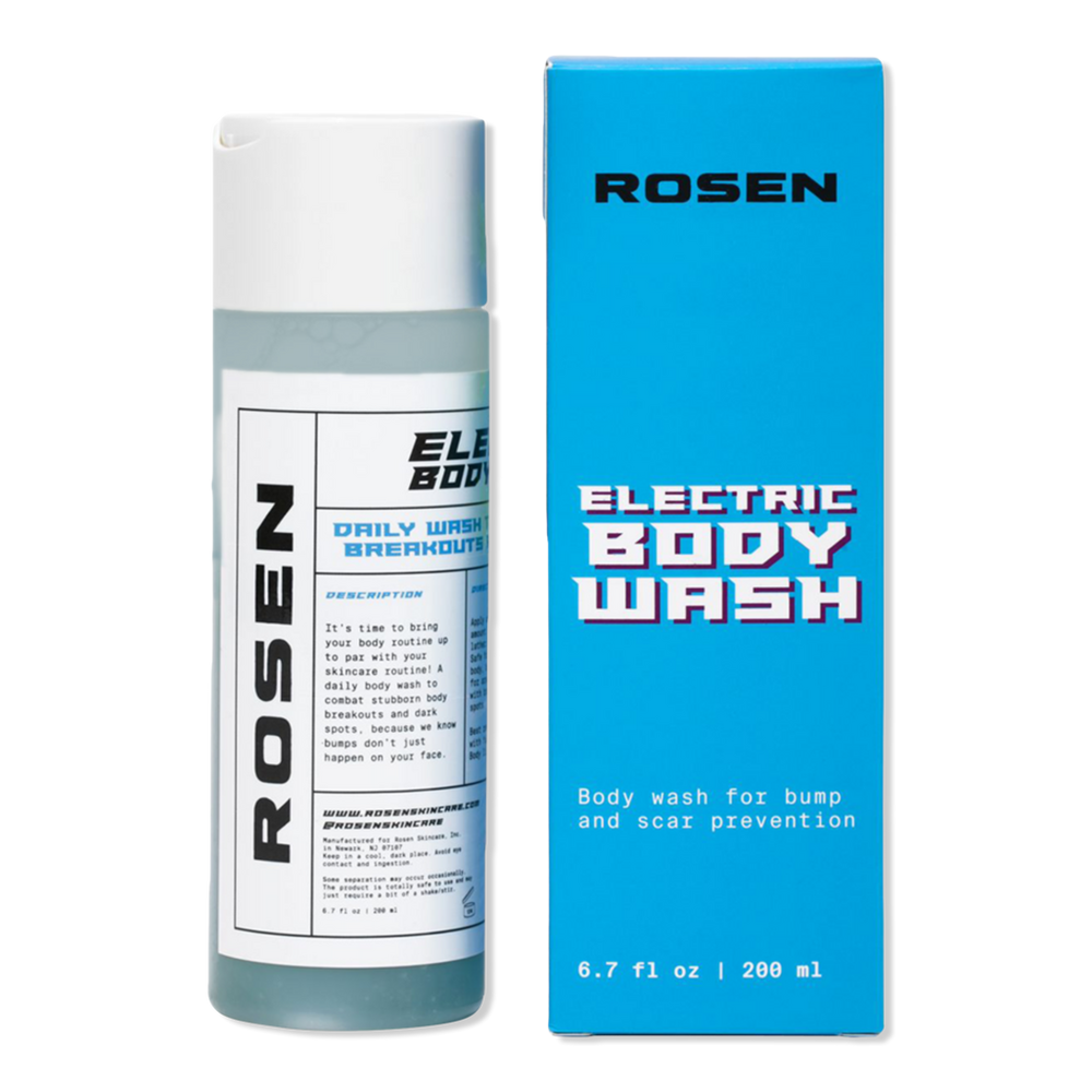 ELECTRIC BODY WASH 6.7OZ. Benefits: Daily body wash for preventing breakouts. Smooths bumpy skin and clogged pores. Fights acne causing bacteria. Fades existing body scars. Key Ingredients: Eucalyptus Oil - Helps relieve dry skin. Apple Cider Vinegar - Antimicrobial properties help soothe irritation, helps restore skins natural pH balance. Lactic Acid - Helps even skin tone, brightens dull skin. :