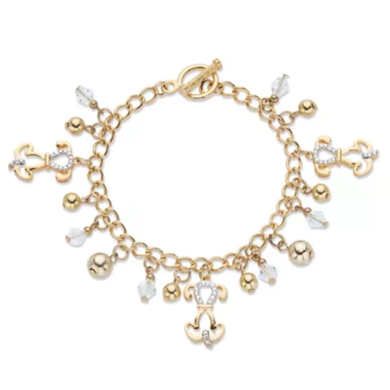 You'll love to show off this fun fashion choice! Featuring sparkling crystal-encrusted dogs with wagging tails and golden bead accents, this charm bracelet is a sweet and stylish way to show your love of all things canine. With a toggle closure, it's 7.5" length. Gold tone.Main Stone: 36 Round Faceted Cut Crystals, 1 mm x 1 mmAccent Stone: 6 CrystalsGoldtoneMeasures: 18 mm wide x 7.5 inches long x 5 mm highIncludes gift box and drawstring pouchGoldtoneDimensions: 18 mm wide x 7.5 inches long x 5 mm highIncludes gift box and drawstring pouch Toggle closure, 42 Polished finish Warranty available China Imported Product Specifications 0.91 in x 7.5 in x 0.71 in, 7.5" length Material & Care Metal, Gold-Tone Clean with a soft cloth.