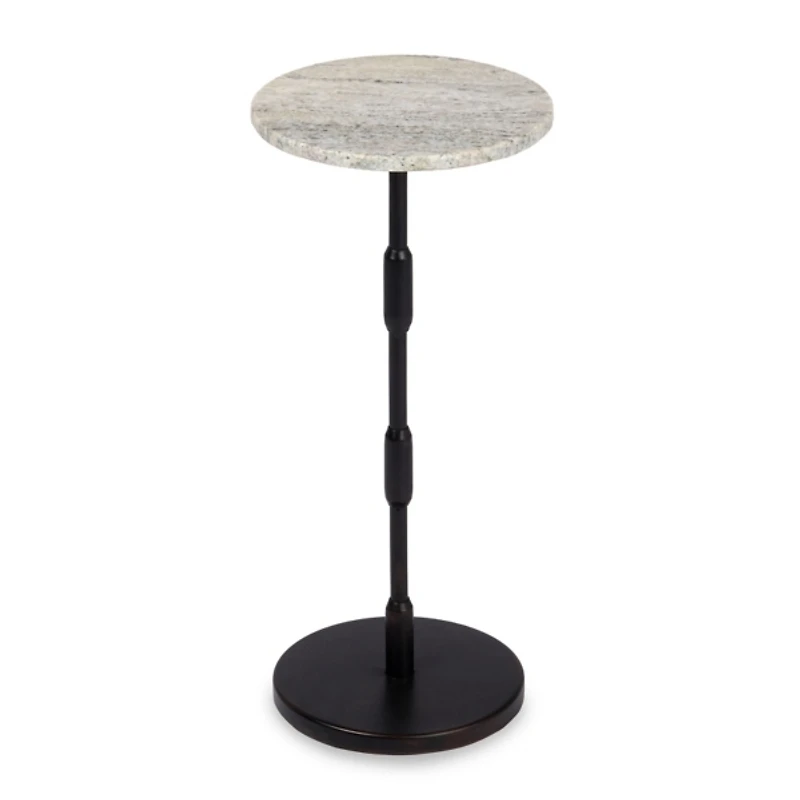 Update your living room with the modern look of this Round Kimmie Marble Side Table. The speckled marble tabletop is perfectly complemented by its sleek, black base, creating a piece that stands out in any room! Overall dimensions Width: 10 in. Depth: 10 in. Height: 22 in. Crafted of iron and marble Black base finish Features white marble with black speckling Round shape Weight: 8.23 lbs. Not intended for commercial use Care: Dust with a soft, dry cloth. Contact your local Kirkland's store for availability. Quantities and selection may vary by location. WARNING: Cancer and Reproductive Harm - For more information go to www.P65Warnings.ca.gov .
