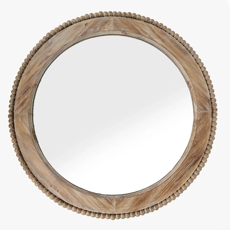Round Natural Wood Beaded Trim Wall MirrorRound Natural Wood Beaded Trim Wall MirrorRound Natural Wood Beaded Trim Wall Mirror