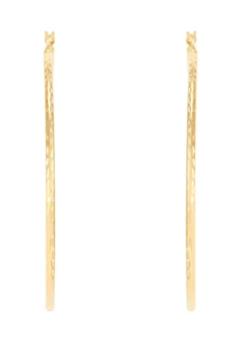 Fashioned in gold over sterling silver, these lovely round tube hoop earrings from Belk & Co. will add sophisticated style to any ensemble. Hinge post earring Polished finish Imported Belk Exclusive Product Specifications 2.36" H Material & Care Gold over sterling silver Clean with a soft cloth