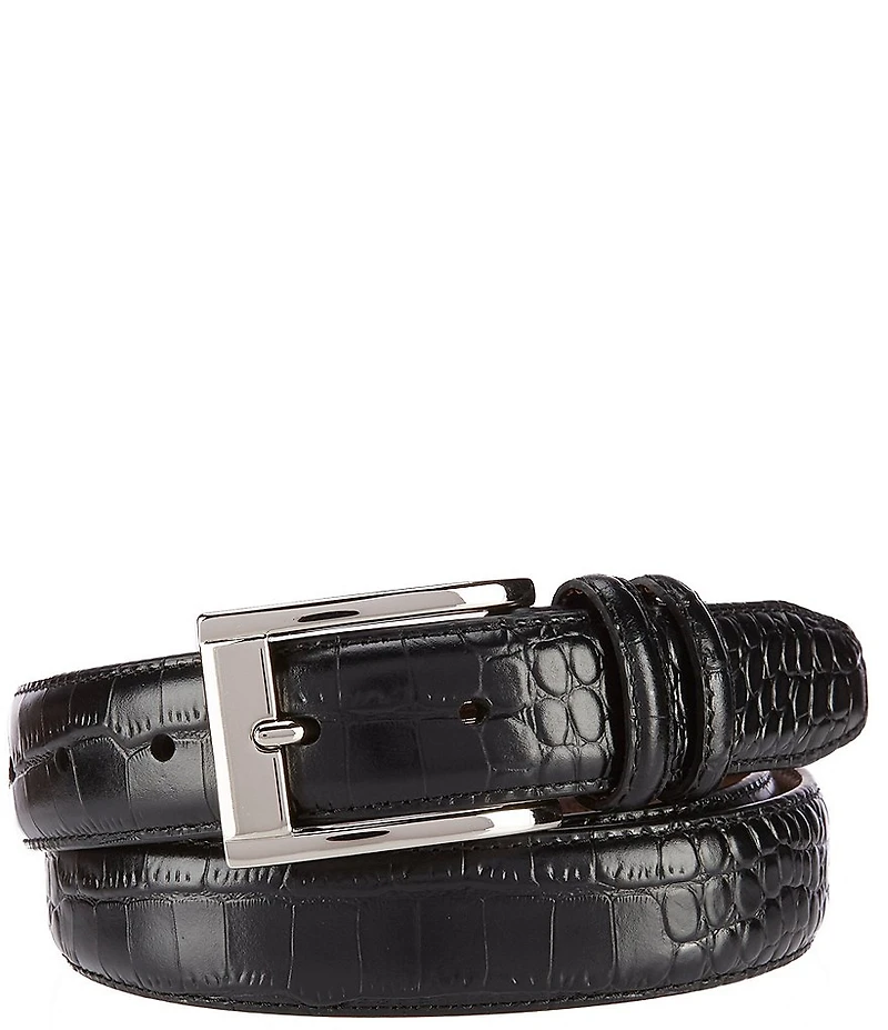From Roundtree & Yorke Big & Tall, this belt features: 30mm feather edge crocodile-patterned Classic nickel brushed buckle with double metal keeper Lined on smooth cowhide Full grain cowhide Imported.