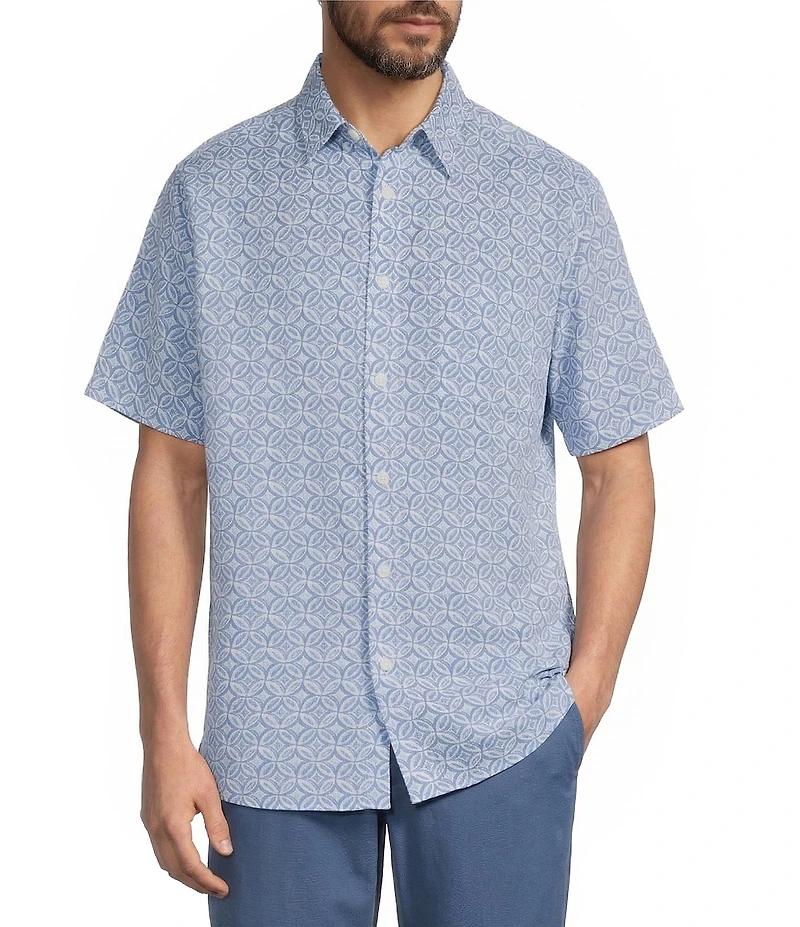 Roundtree & Yorke Big & Tall Short Sleeve Circle Print Linen Blend Sport Shirt in Chattanooga, TN