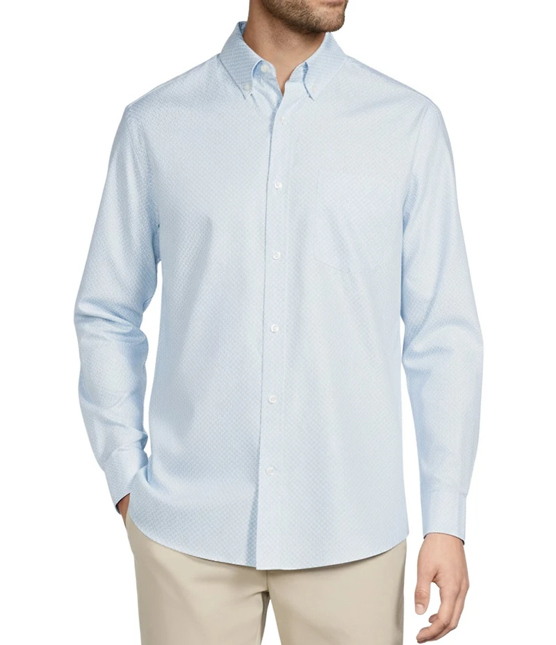 From Roundtree & Yorke, this shirt features: Allover geo print Twill fabric Button-down collar Long sleeves Buttonfront closure Left side patch pocket Shirttail hem Cotton Machine wash/tumble dry Imported.