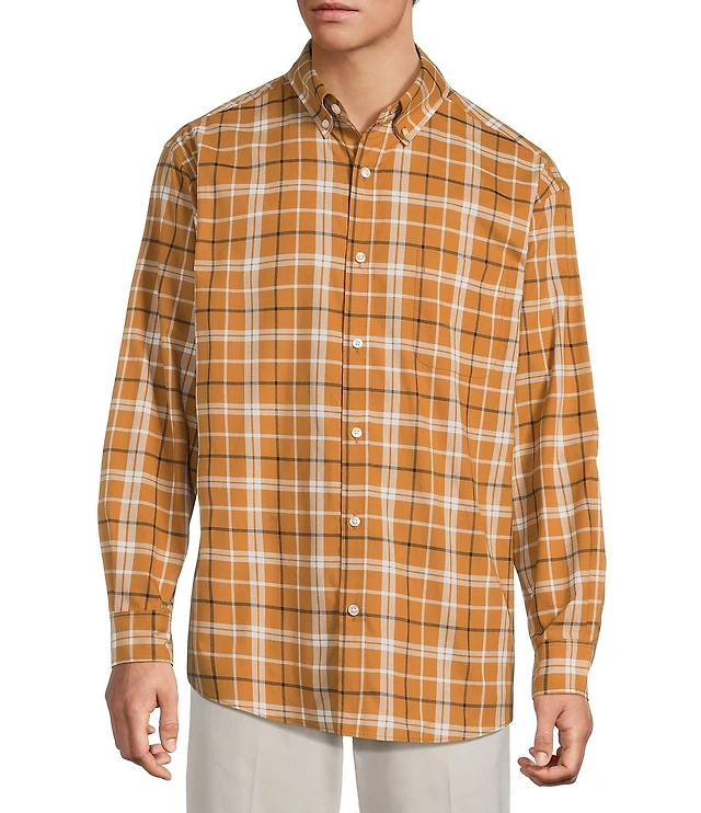Roundtree & Yorke Long Sleeve Plaid Oxford Sport Shirt