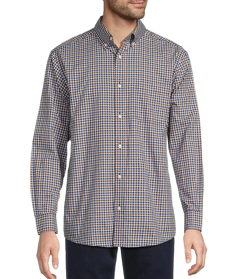 From Roundtree & Yorke, this shirt features: Small plaid pattern Button-down collar Long sleeves Button-front closure Patch pocket on the left side of the chest Shirttail hem 100% cotton Machine wash warm/tumble dry Imported.