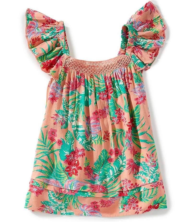 Roxy Big Girls Tropical Floral Printed Crocheted Trimmed Crinkled Crepe Top