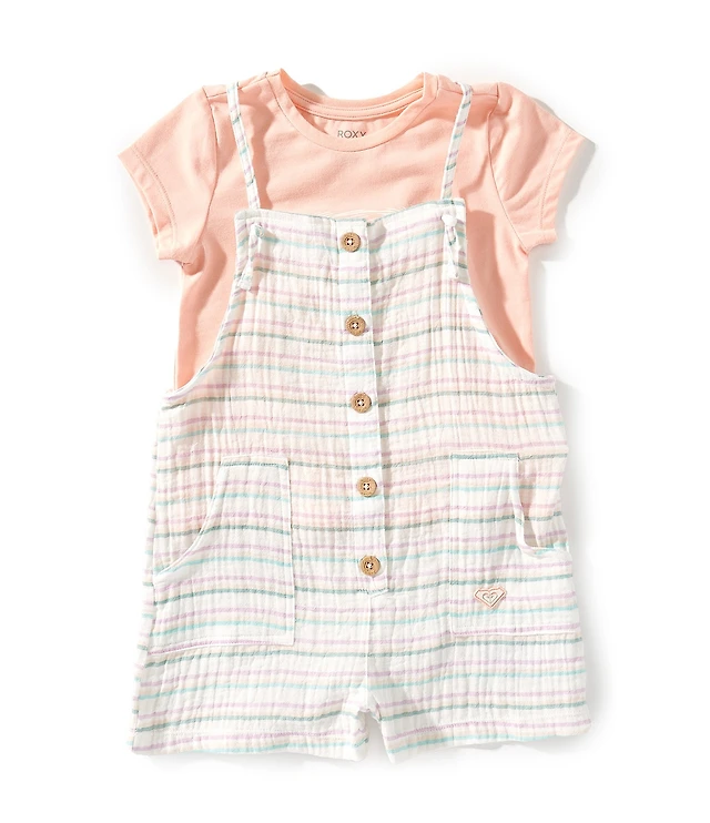 Roxy Little Girls Short Sleeve T-Shirt & Shortall Set