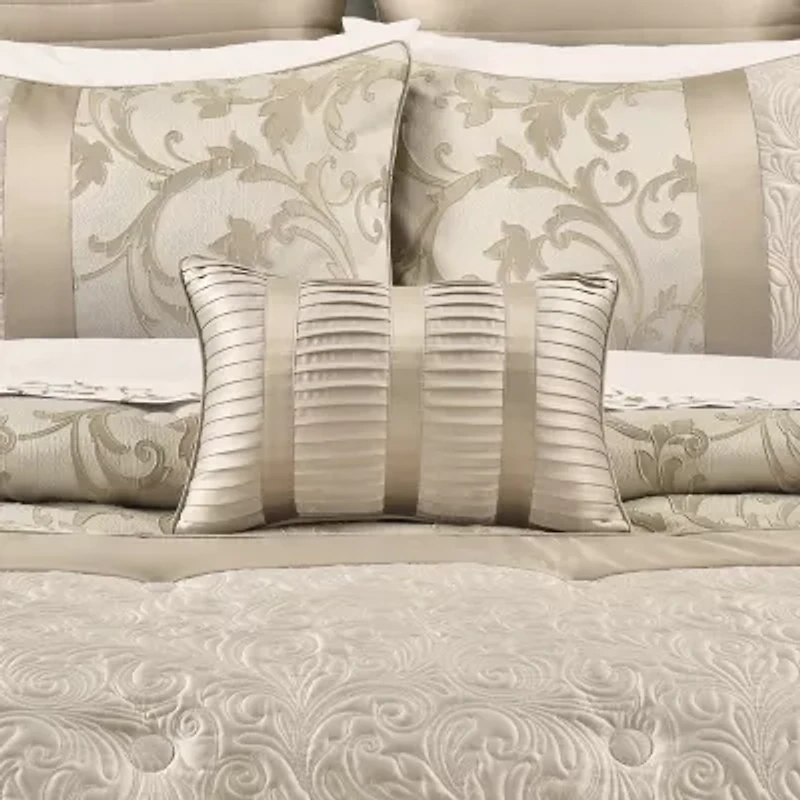 The Spectra Boudoir Throw Pillow features a pin-tuck textured stripe design in a soft ivory and taupe colorway. Finished with a self-fabric cord, pair this sleek satin accent pillow with the Spectra comforter set for a complete elegant look.