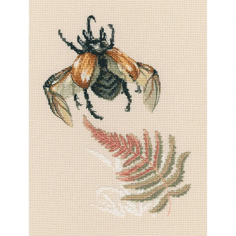 Create a lovely picture of a flying beetle with this RTO counted cross stitch kit. It includes an easy to follow stitching chart and detailed stitch diagrams.Details:Bugs Fly (M758)6.1" x 8.27" (15.5cm x 21cm) finished project sizeContents:23 skeins DMC® Mouline flossBeige cotton Aida 14 canvasNeedleChartInstructions