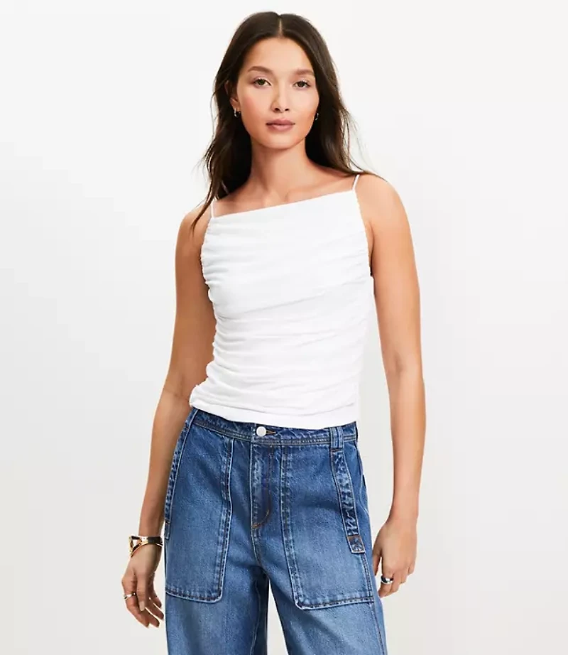 It's soft and comfy, it's modern and chic, it's pulled - together and flattering - this ruched stretch knit crepe top is an everyday game - changer. Square neck Spaghetti straps Square back, Bullet1: 16 1/2"long, Imported:, Fit: Classic follows your contours with a little room, Length: Regular - hits below natural waist, Fabrication: 95% Polyester 5 Spandex, Garment Care: Machine Washable Loft Ruched Apron Neck Top Size 2XS Black Women's by Loft Size Regular - 2XS Black Women's Square, Neck Sleeveless Blouse Tops Wear To Work 95% Polyester 5% Spandex Machine Washable