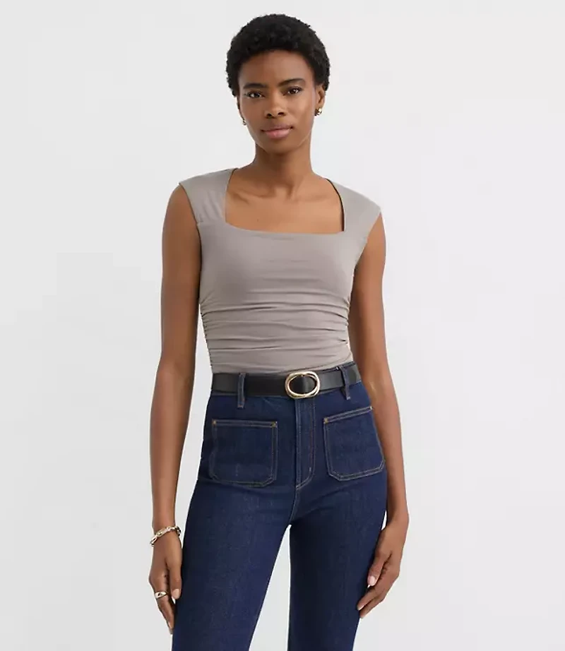 In super soft and stretchy jersey, this ruched knit stars a sleek square neck for statement - making style from every angle. Cap sleeves Lined, Hit: Hits at waist, Imported:, Length: 22"long, Fabrication: 95% Cotton 5 Spandex, Garment Care: Machine Washable Loft Ruched Square Neck Top Size 2XS Black Women's by Loft Size Regular - 2XS Black Women's Cotton, Blend Square Neck Sleeveless Tanks & Shells Tops Casual Chic 95% Cotton 5% Spandex Machine Washable