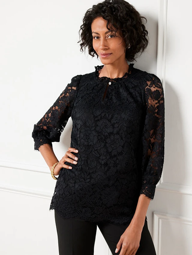 Jude Connally Teri Flocked Lace Scallop Ruffle Neck Long Sleeve Top