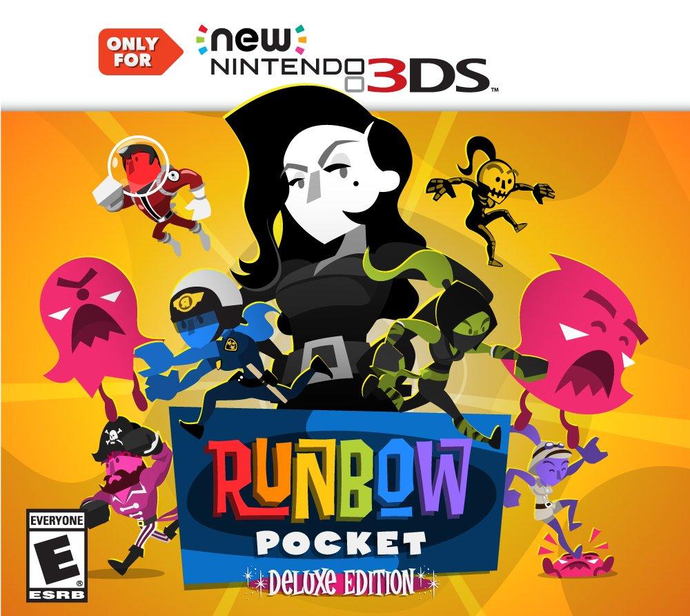 Only playable on a Nintendo New 3DS. The Runbow Pocket Deluxe Edition includes the critically acclaimed action platformer with all the DLC. New DLC includes new levels, costumes/ characters, a whole new story campaign, and more! Runbow is a fast, frantic game that will keep you running back for more. The world changes with each swipe of the background, so you'll have to stay on your toes as platforms and obstacles disappear. If you can't see something, it doesn't exist. With hundreds of levels, dozens of costumes, and more indie guest characters than you can handle, you better get ready to Runbow!