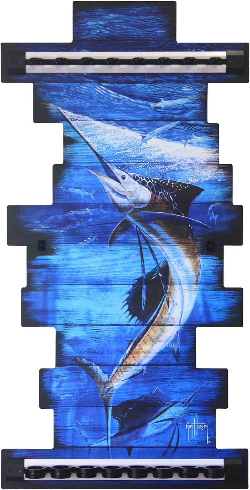 Keep your rods and reels organized with the Rush Creek Guy Harvey Fish 8-Rod Wall Storage Rack. The top-quality construction offers lasting use, while the Guy Harvey artwork adds an eye-catching appearance.