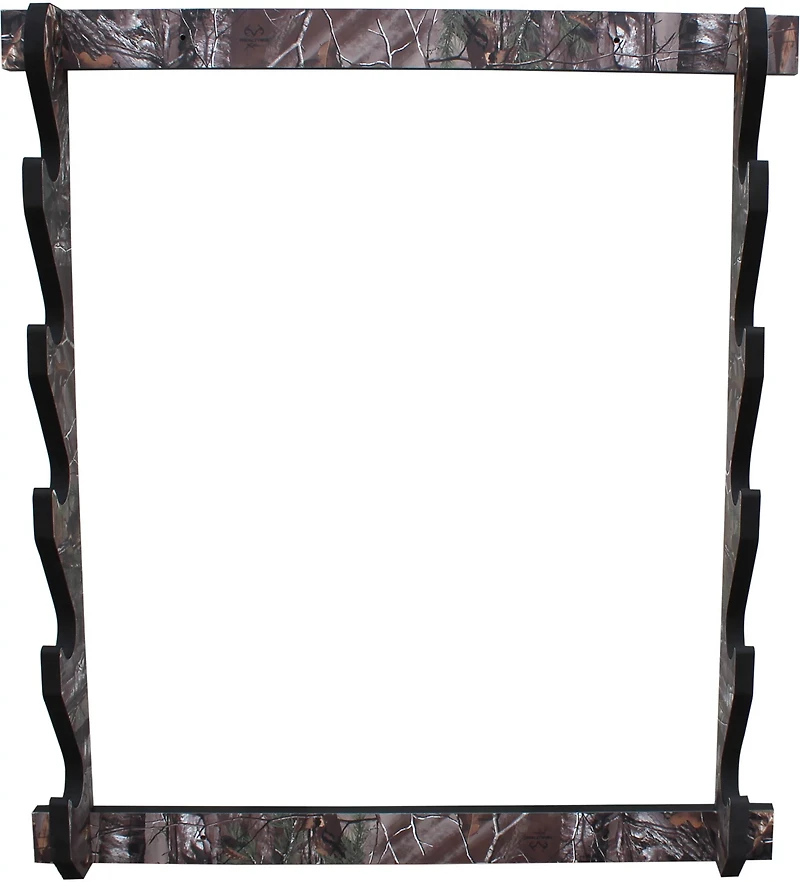 Display your rifles and shotguns in the Rush Creek Realtree Camo 5-Gun Wall Rack. The rack stores up to 5 firearms, and the 4-piece construction has a Realtree™ camo-pattern laminate to show off your love for the great outdoors. The secure grooves ensure your guns stay in place, and the padding safeguards each gun's finish.