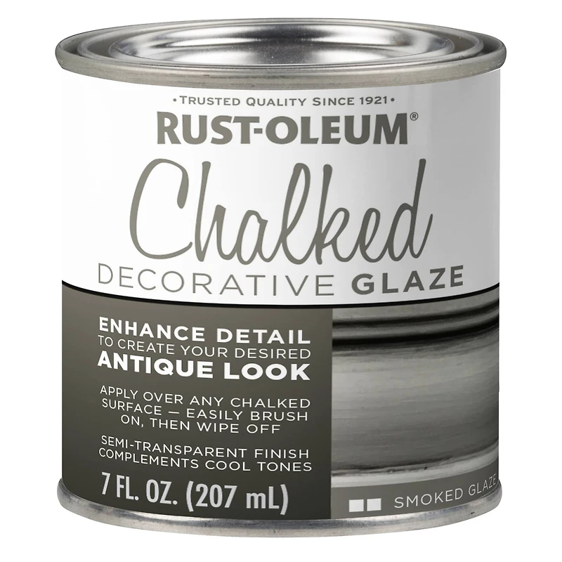 Rust-Oleum Chalked Decorative Glaze allows you to add a custom antiqued finish to any Chalked painted surface. This semi-transparent Decorative Glaze offers easy workability allowing you to customize your handcrafted, final look. Chalked Decorative Glazes enhance the details of brush strokes, wood grain, corners, crevices and more.Details:Available in multiple colors7 fl. oz. (207 mL)Semi-transparentEasy applicationApply over any Chalked surface (brush or spray)Brush on, wipe off to desired look