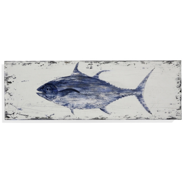 Add a coastal feel to your living space with this charming ocean art. This Rustic Tuna Canvas Plaque has a weathered look and is painted on real wooden planks. Plaque measures 59L x 1.5W x 20H in. Distinctively printed on stretched canvas Hues of white, blue, and black Features fish design Rustic finish Weight: 5.5 lbs. Comes ready for wall mount; no additional hanging hardware required Care: Dust with a soft, dry cloth. This item is available at Kirklands.com only, not available in stores. Please note: this item cannot be shipped to APO/FPO addresses.