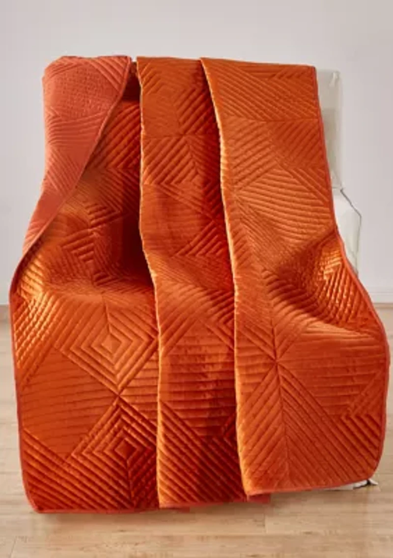 Add an irresistible layer of lavish velvet. This season, bring modern styling to your space with the Riviera Velvet quilted throw blanket. Each heirloom-quality set features machine quilted Dutch Velvet face, for a soft, plush look and feel you'll want breakfast in bed for. Perfect as a layering piece, or to add color and texture to your favorite sofa, Riviera Velvet's unique quilting pattern matches a variety of contemporary and industrial decor themes. Dimensions: 50x60” (+/- 2”). 100% polyester Duthc Velvet face and back; 100% polyester fill. Machine Washable. 126 Imported Product Specifications 50x60 Material & Care 100% Polyester fill Polyester Machine washable, gentle cycle