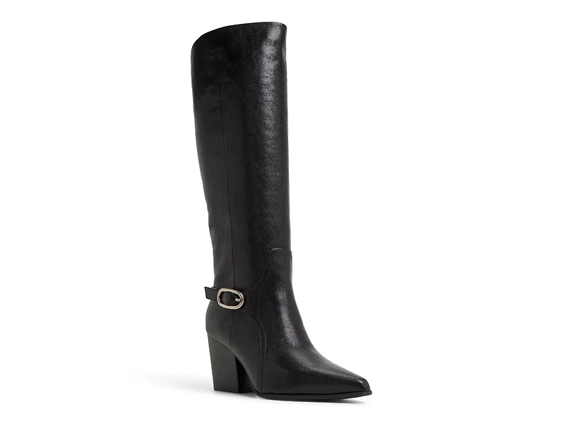 Lift cool weather looks with chic style in the Saphiria boot from Aldo. This leather pair features a riding-inspired buckle accent and a chunky block heel to further to chic appeal of this knee high.