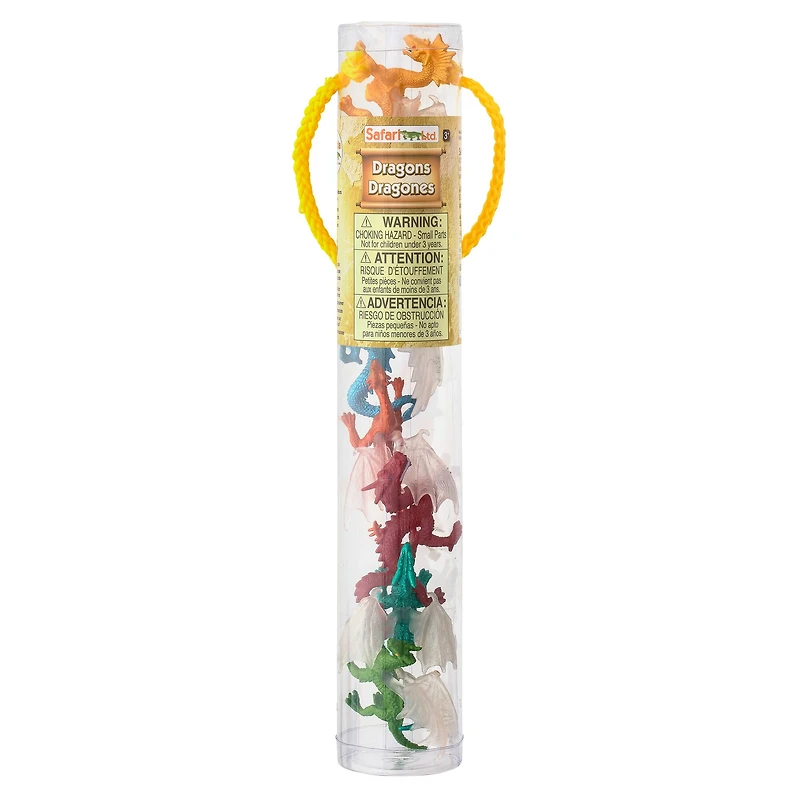 Recreate the magic with the mystical dragons by Safari Ltd. These high-quality, hand painted figurines feature accurate details and make great gifts for friends and family. These adorable mini dragon replicas in vibrant colors are sure to be loved by children and adults. You can use them for story telling, pretend play and DIY craft projects. Details: 1.76" x 1.76" x 10.34" TOOB size Includes 6 pieces Phthalate-free and lead-free PVC Stacked in a plastic tube Meet and exceed all worldwide standards For ages 3 and up Contents: Forest Dragon Ice Dragon Midnight Moon Dragon Mountain Dragon Cloud Dragon Chinese Horned Dragon
