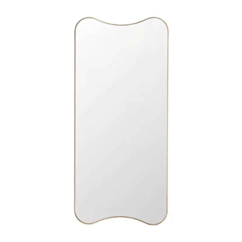 Embrace the chic style and enhanced functionality of our Hyla wall mirror. The clean lines of the mirror are updated with a wavy silhouette to maintain a symmetric yet soft and eye-catching appeal. The distinctive profile of the mirror is enhanced with a gold frame for a refined and polished look. Our tall, wall-mounted mirror keeps the floor space open and clear to become a practical addition to a guest room, entryway, or wardrobe.