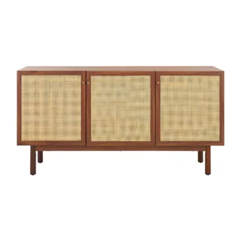 Liven up any corner with our modern and texturally rich Aino sideboard. Showcasing a compelling mix of materials, our sideboard presents a versatile and charming storage solution. Its facade is enriched with a rattan mesh to lend a warm and breezy look to any room. A luxe finish accentuates the rich textural appeal of our charming sideboard. Its round pulls open up to three roomy cabinets. Besides housing all your media equipment, our spacious sideboard can also be used to store your living room essentials, dinnerware, and table linens.