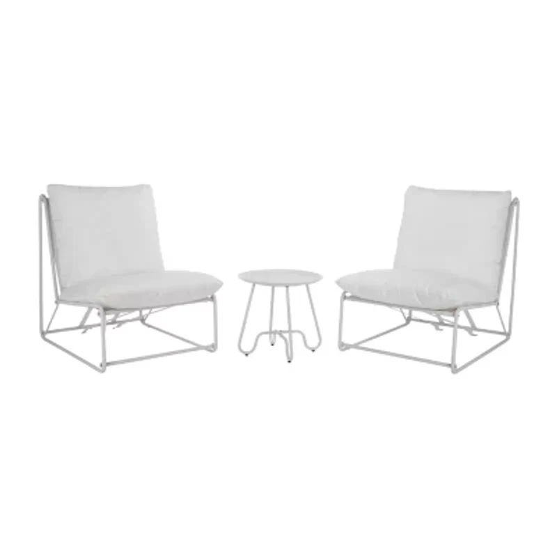 Bring inviting comfort and sleek style to your outdoor space with our archie 3 piece set. Featuring two stylish accent chairs and a side table, our outdoor living set lends effortless comfort and lasting quality to any al fresco setting. The slender and refined, steel frame of the chairs offers a sleek and sophisticated style. It is complemented with generously padded cushions to promise a comfortable stay. The cushions are neatly tailored in durable and easy-to-care textilene fabric. Our outdoor living set offers indoor-like comfort all year round, creating a perfect spot for lounging and chatting in a balcony, patio, or backyard.