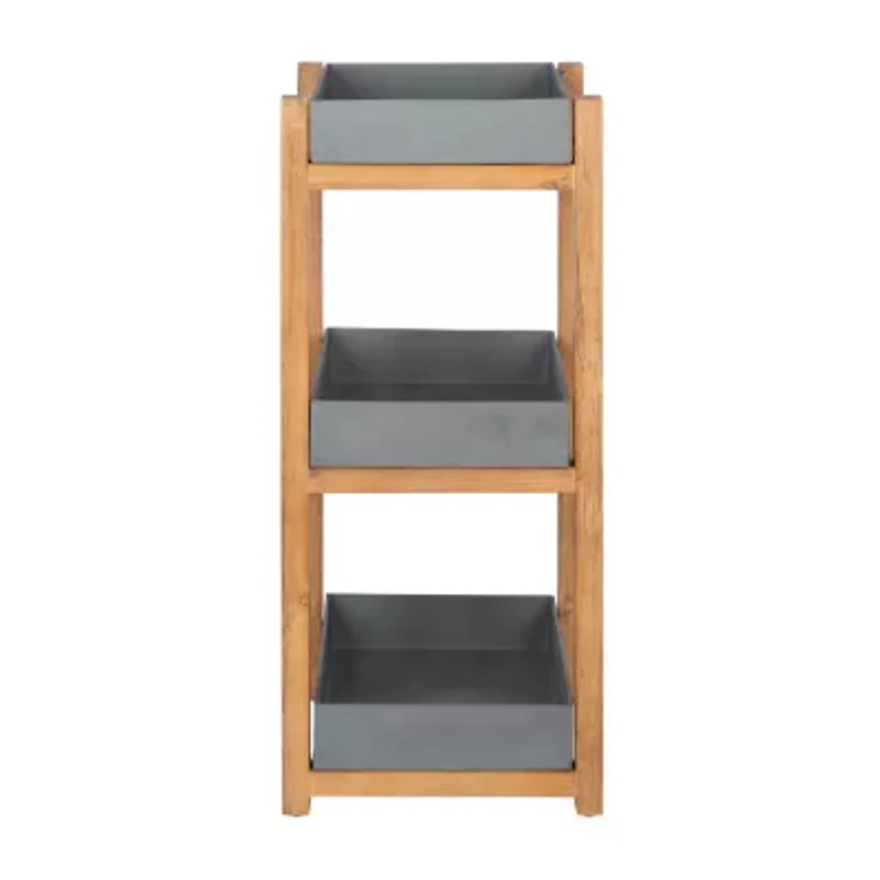 Perfect for outdoor supplies or poolside towels, this artria shelf masters form and function in its mixed media artistry. This shelf has raised sides, lend an industrial look to its tropically styled natural acacia frame, making it ideal on the porch, patio, or in the garden.