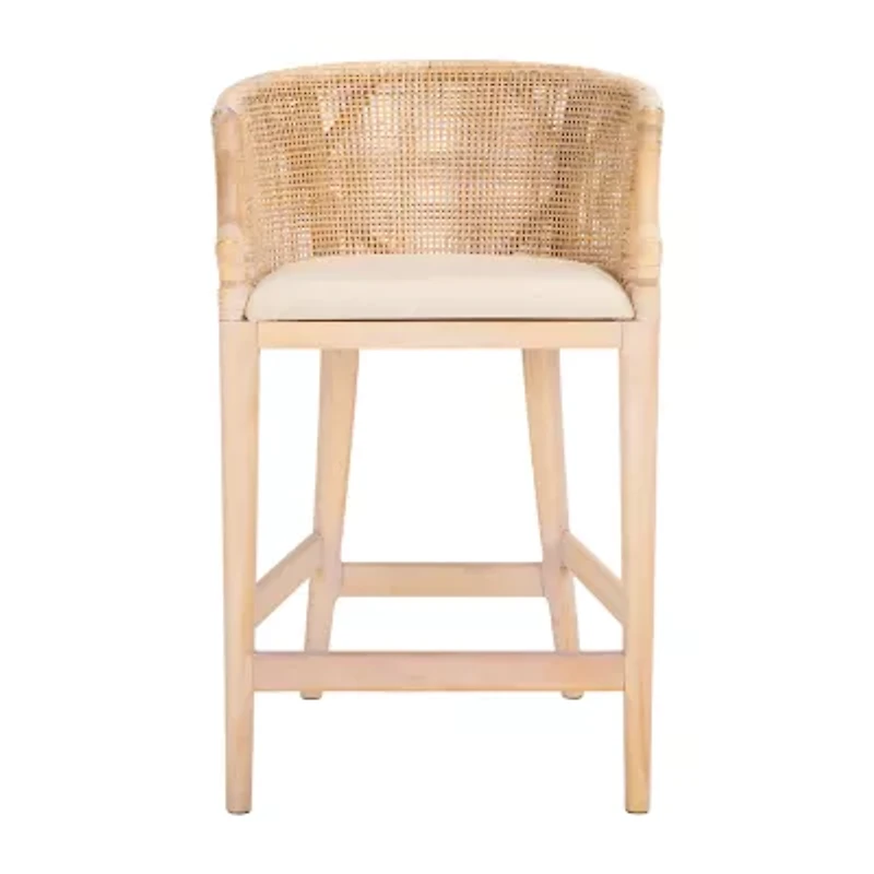 Enliven your space with the breezy charm and comfort of our Brando counter stool. Our chic and modern stool gets a texture-forward update with a stunning mix of materials. The barrel back of the stool is covered with rattan mesh to offer breezy elegance. Its rich textural appeal is complemented by a solid wood frame. Featuring a hugging back and a padded seat covered in performance fabric, our stool offers everyday elegance and comfort. It can bring organic character to your kitchen counter and high dining area with plenty of style.