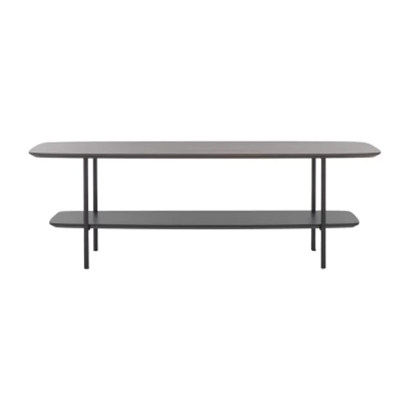 Anchor your space with the modern and graceful presence of our Kayleigh coffee table. The clean and refined profile of the coffee table is updated with an elegant mix of materials. Its elongated profile is completed with curved edges for a sleek and inviting look. The tabletop and shelf showcase a dark sandstone finish to add polish and depth to any room. Completed with slender metal legs, our coffee table lends a sleek and stylish look to any space. It includes a shelf to maximize both display and storage space.