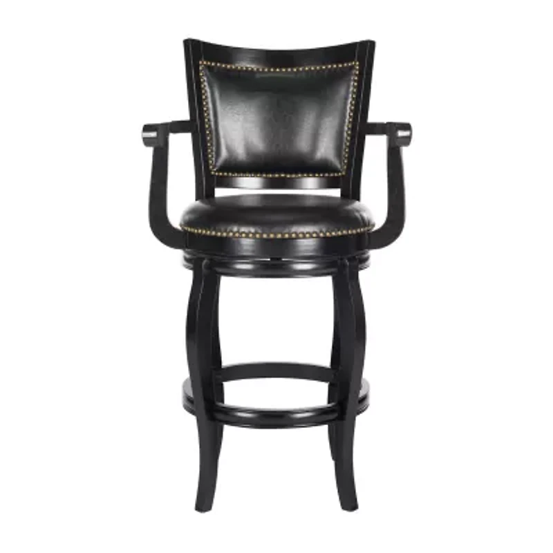 Timeless with a Euro chic edge, the Gitano swivel bar stool gives a classic silhouette an update for transitional rooms. Upholstered with PU leather with a nailhead trim, Gitano is crafted of eco friendly rubberwood in an crisp finish.