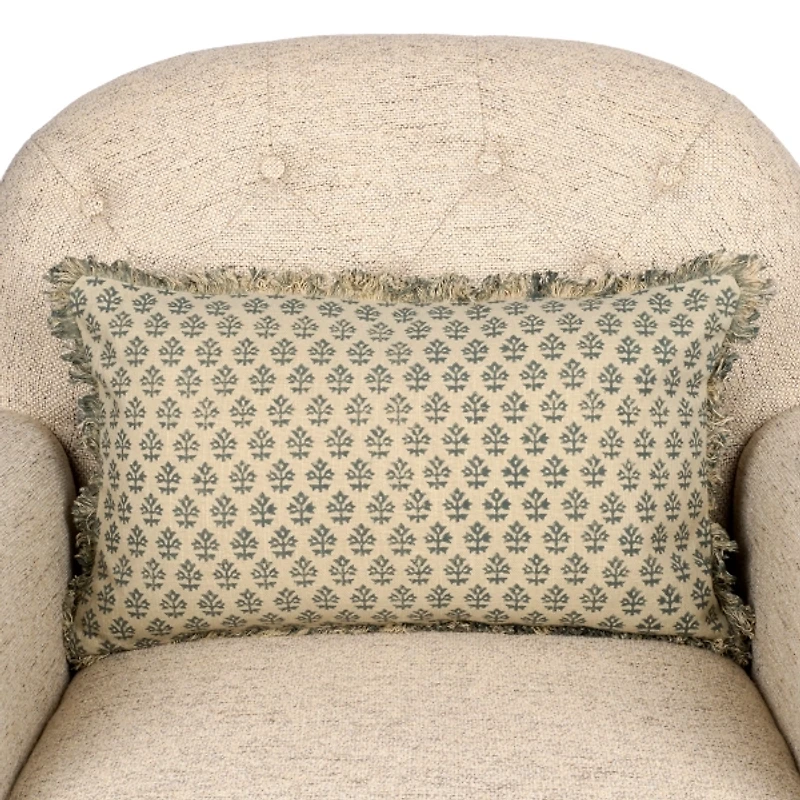 Sage Floral Fringe Lumbar PillowSage Floral Fringe Lumbar Pillow