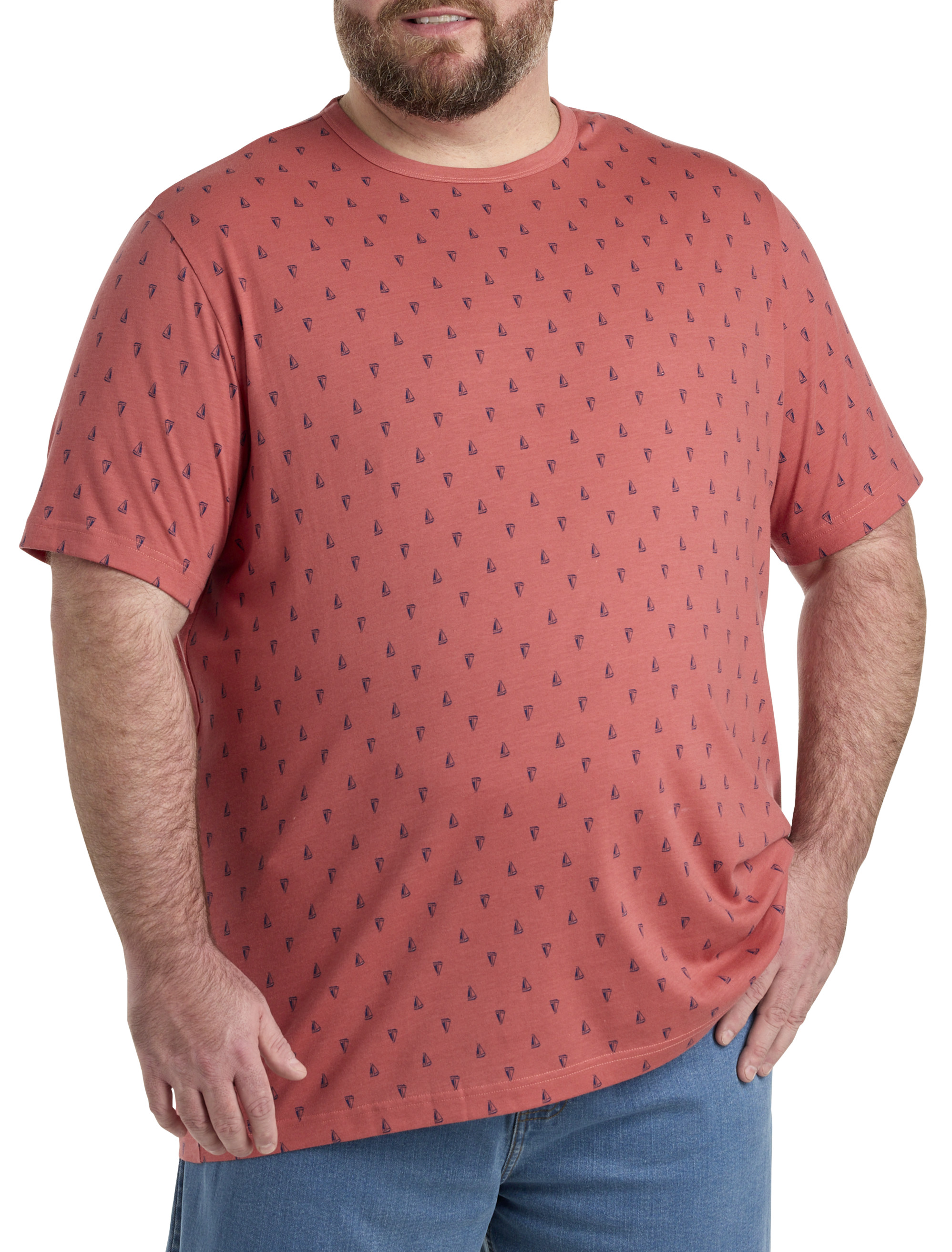 Achieve that laid-back vacation vibe anytime with this breathable sailboat print T-shirt from Harbor Bay. It's crafted in a lightweight cotton-polyester blend that resists twisting and pilling to keep its shape and wicks away moisture to keep you dry and feeling fresh so you can carry on with your day in confidence. A style you'll only find at DXL in Big and Tall sizes, it's been redesigned from other beloved tees to ensure proper proportions for an even better fit. It's sure to be a warm-weather staple and favorite in your collection.