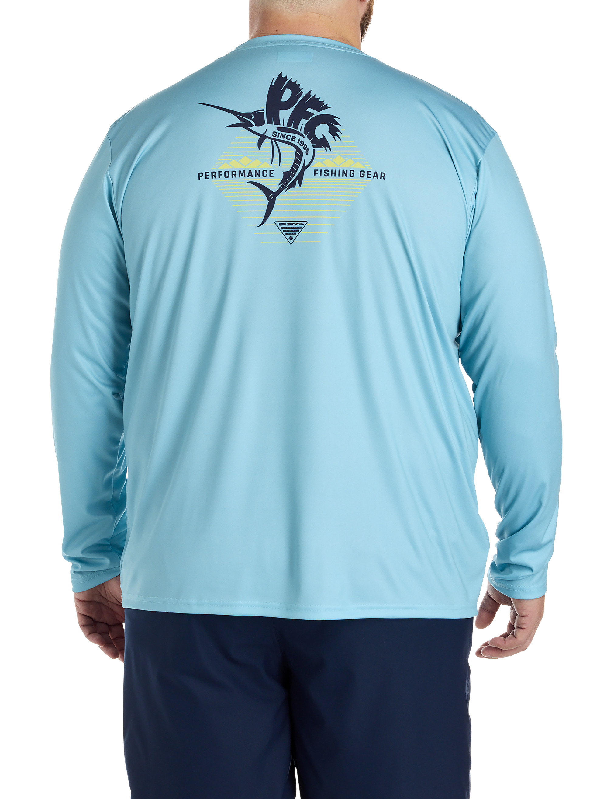 This classic, PFG (Performance Fishing Gear) long-sleeve T-shirt from Columbia is built with Omni-Shade™ Broad Spectrum UPF 50 to protect against skin damage using select fibers and fabrics to block a wider range of UVA/UVB rays, so you stay safer in the sun. The Omni-Wick™ moisture-wicking technology provides comfort and utility on and off the water. Complete with the signature logo at the left chest and down the arm and a marlin logo on the back side, it adds eye catching interest and is the perfect lightweight layer for whatever the day brings.