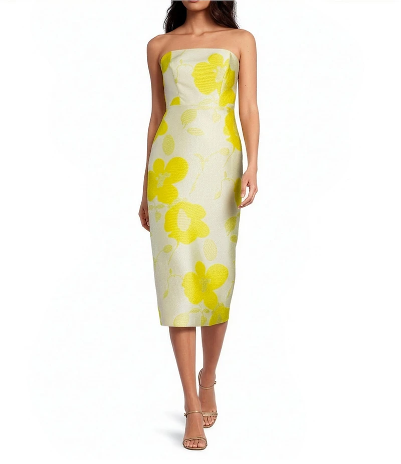 Sam Edelman Floral Print Strapless Sheath Chiffon Midi Dress
