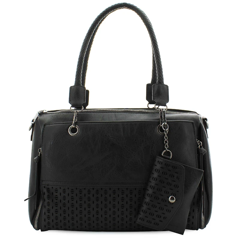 Elevate your accessory game with the Sam & Hadley Satchel, a modern take on a classic silhouette. Designed with clean lines, subtle hardware, and a spacious interior, this satchel is the perfect blend of fashion and function for your daily routine. Crafted from durable, high-quality materials, the GL347 Satchel features dual top braided handles for a polished, professional look, plus a detachable and adjustable crossbody strap for hands-free convenience. The roomy main compartment, zip closure, and interior pockets make it easy to stay organized whether you're heading to the office, running errands, or out for the weekend. Shop SHOE DEPT. ENCORE today.