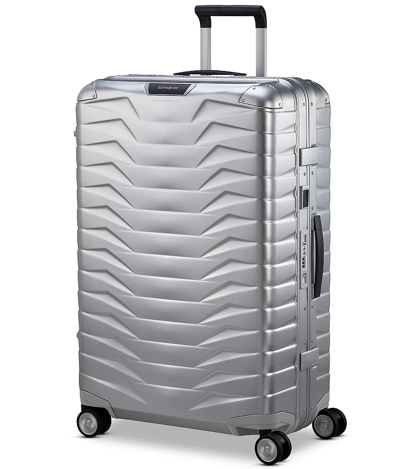 From Samsonite, this Proxis Aluminum Hardside Spinner features: Tough, yet striking, our 16.69 lbs. large spinner comes fully equipped with familiar features you’ve come to love. Including 360-degree spinner wheels for effortless travel and TSA-approved locks. Over time, aluminum luggage is prone to scuffs and dents, giving it more character with every journey. Exterior Features: Integrated TSA-approved lock Anodized aluminum corner guards 360-degree dual spinner wheels for effortless maneuverability on any surface Dual tube lightweight aluminum handle Approx. Weight: 16.7lbs. Approx. Exterior Dimensions: 29.9"H x 20.5"L x 11.4"W Interior Features: Dual pocket divider Structured frame removable packing panel Adjustable compression straps Approx. interior dimensions: 28.3" H x 18.8" L x 11.2" W Imported.